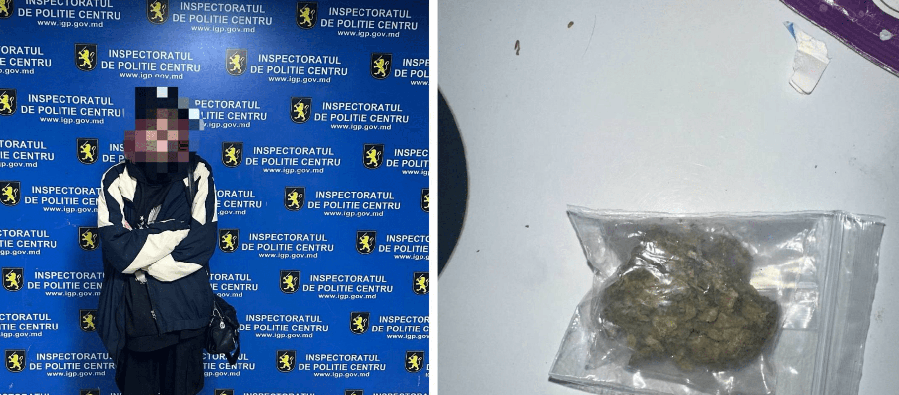 Potrivit forțelor de ordine, în timpul discuțiilor și al verificării benevole a bunurilor, în mâna stângă a tinerei a fost găsit un pachețel cu o substanță verde, uscată și mărunțită. Aceasta a recunoscut pe loc că pachetul îi aparține.