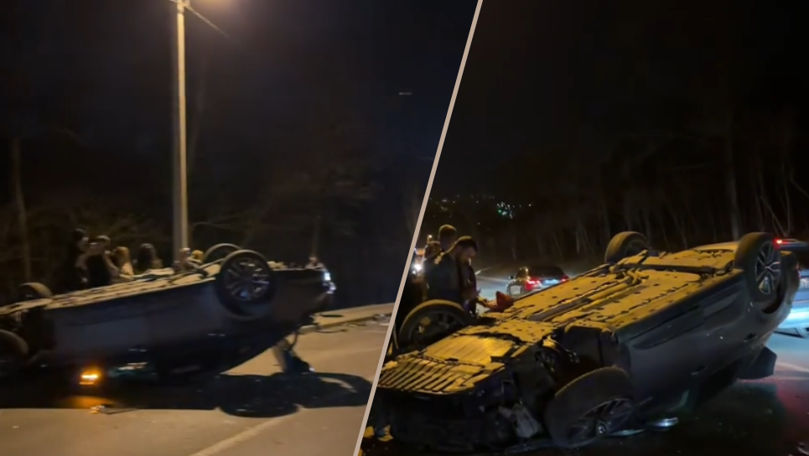 În urma impactului, autovehiculul Samsung s-a răsturnat, iar șoferul a fost preluat de ambulanță și dus la spital pentru investigații medicale.