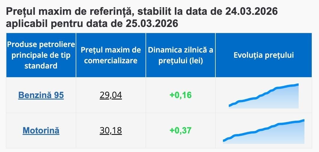 ANRE a stabilit noile prețuri maxime la carburanți, care vor intra în vigoare mâine, 25 martie.
