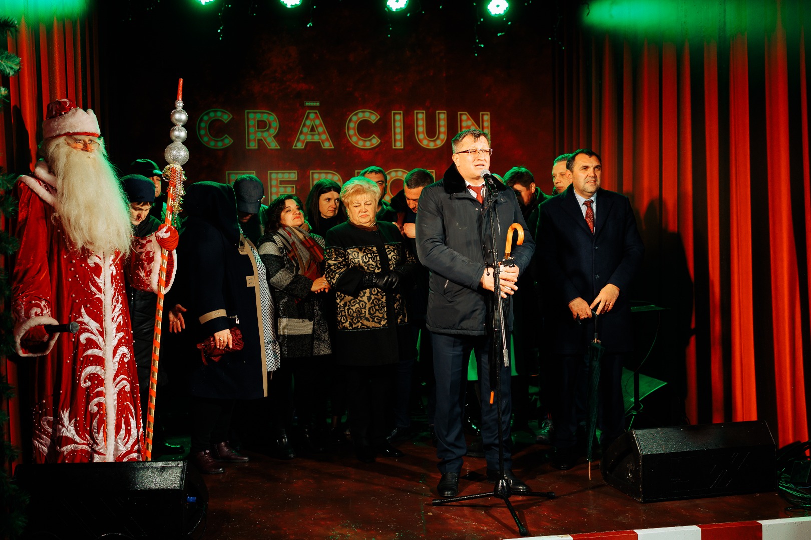 На сцене, установленной в центре Оргеева, распевали колядки с добрыми пожеланиями по случаю зимних праздников.