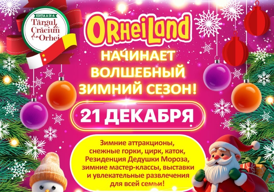21 декабря OrheiLand, крупнейший парк развлечений в Молдове, откроет свои двери, чтобы дать старт зимним праздникам, и подарит посетителям незабываемые впечатления. По случаю IX Рождественской ярмарки парк превратится в яркую новогоднюю локацию.