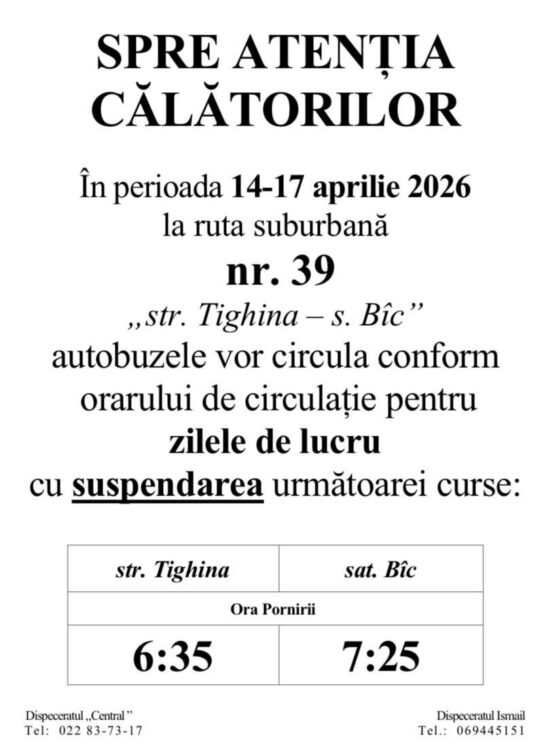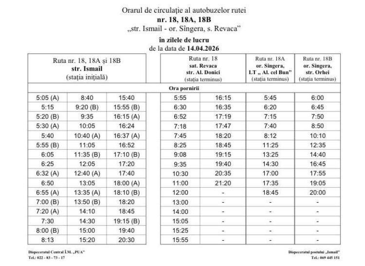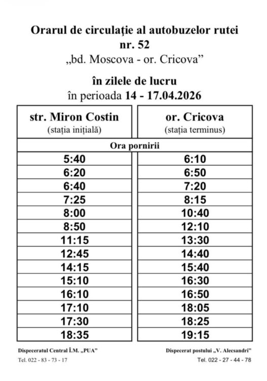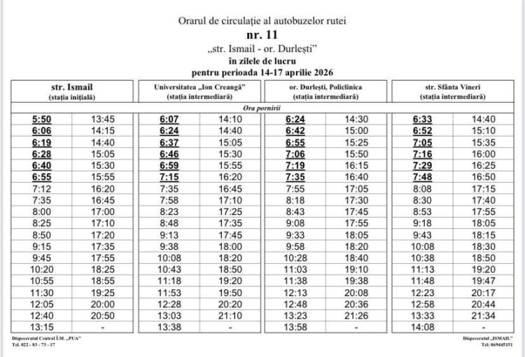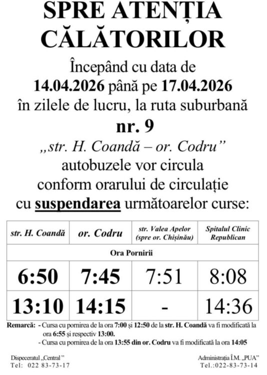 В период с 14 по 17 апреля 2026 года, в связи с пасхальными каникулами, несколько автобусных маршрутов в Кишиневе будут курсировать по измененному графику. Согласно информации, опубликованной мэрией Кишинева, корректировки коснутся автобусных маршрутов номер 9, 11, 39 и 52.